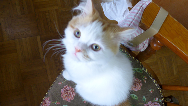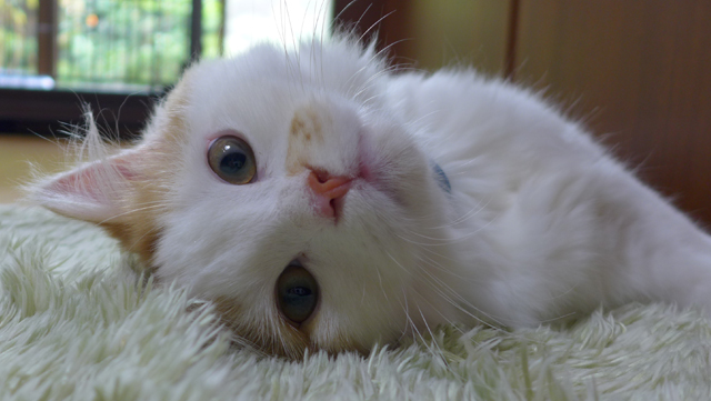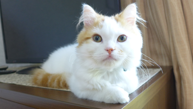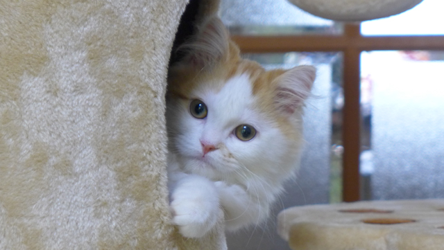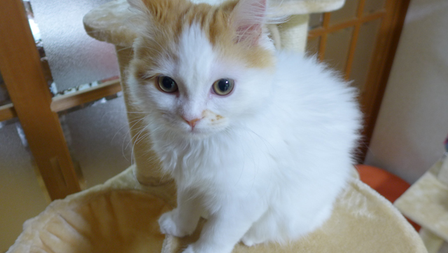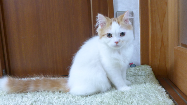 プロフィール:名前は、まろくん。マンチカン・長毛・長足・レッドダビーホワイトバン・男の子・2018/12/21生まれ・京都府マンチの樹出身。タイトル背景は、まろくんのオデコ(笑)。