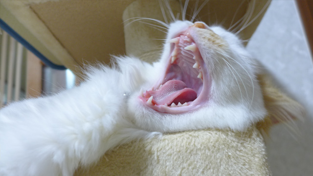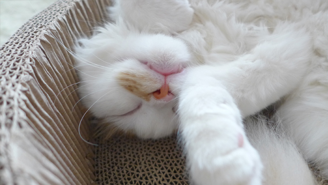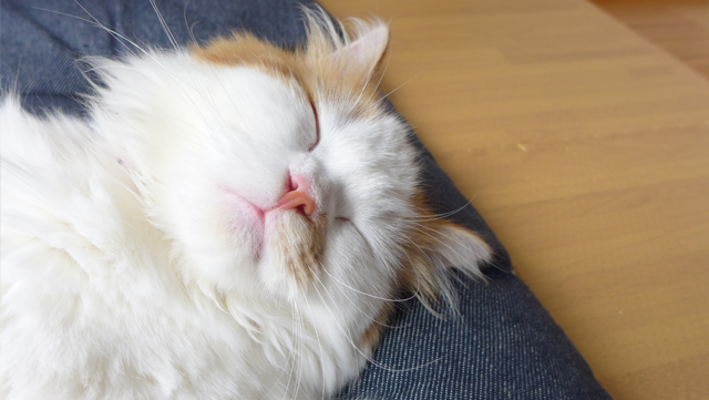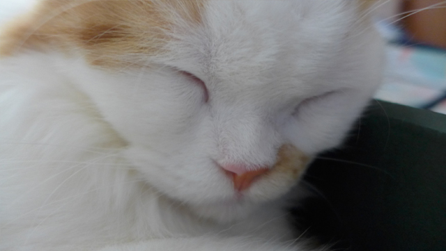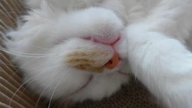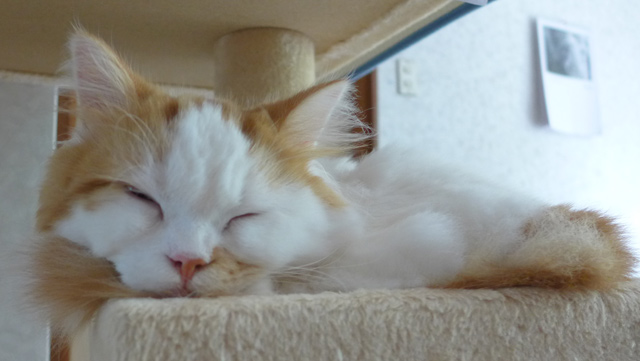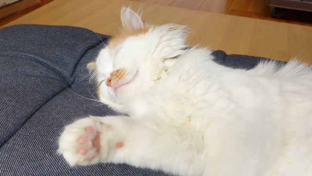 少しクチあけて、牙出して、ニコニコ顔で、お昼寝です。
