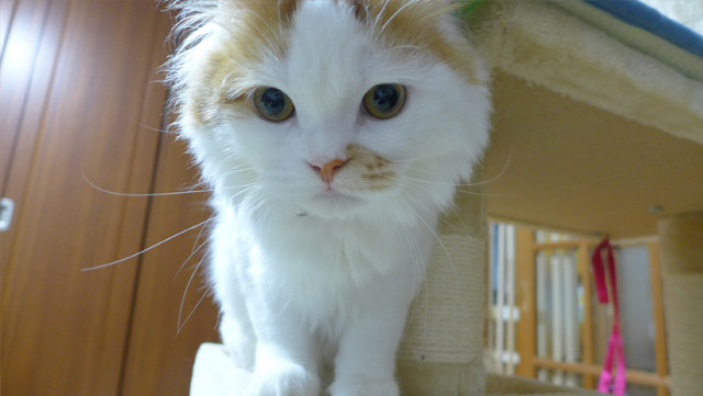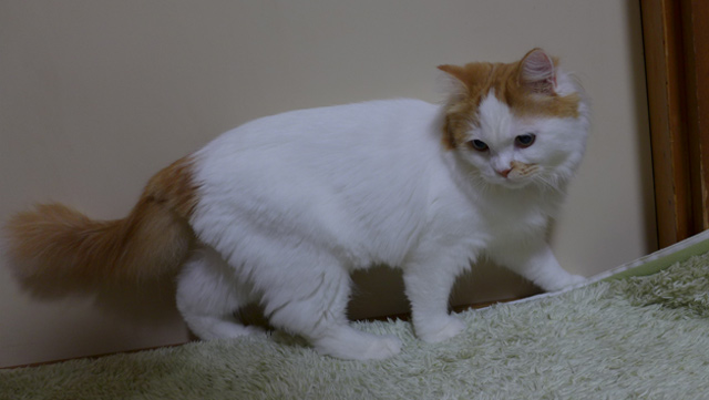 プロフィール:名前は、まろくん。マンチカン・長毛・長足・レッドダビーホワイトバン・男の子・陸上部・体操部・サッカー部・探検部・2018/12/21生まれ・京都府マンチの樹出身。タイトル背景は、まろくんのオデコ(笑)。