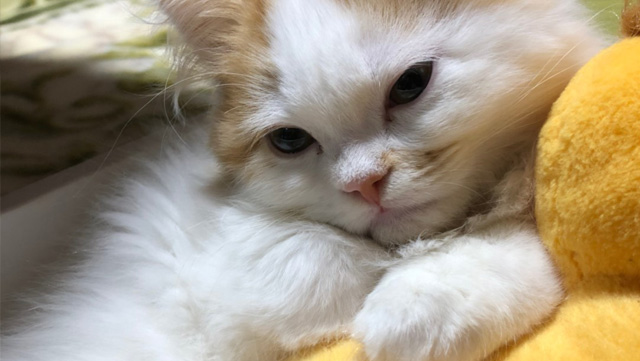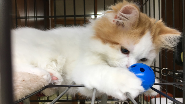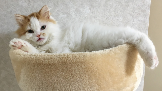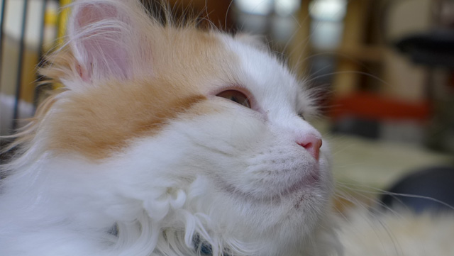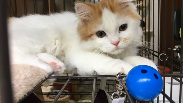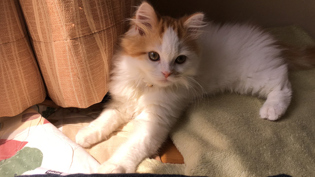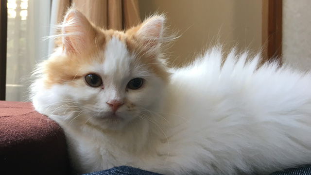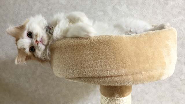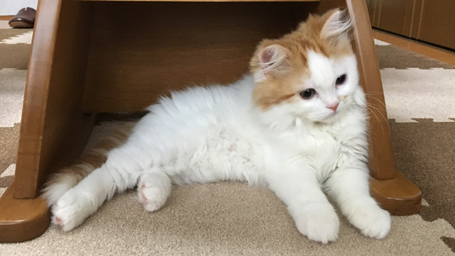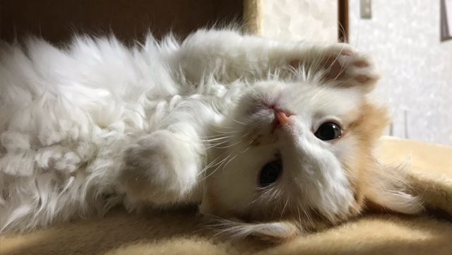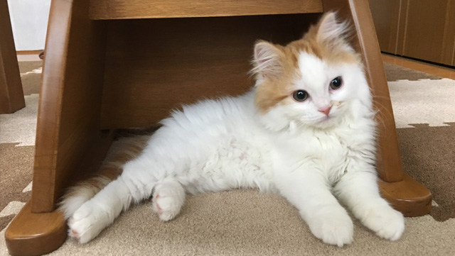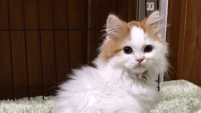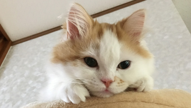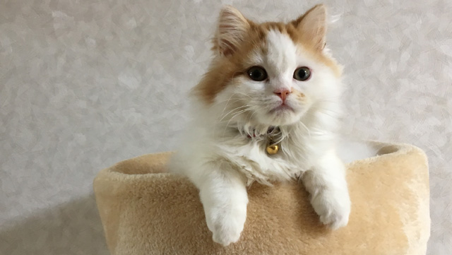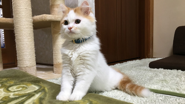 プロフィール:名前は、まろくん。マンチカン・長毛・長足・レッドダビーホワイトバン・男の子・2018/12/21生まれ・京都府マンチの樹出身。タイトル背景は、まろくんのオデコ(笑)。
