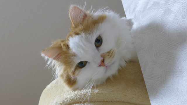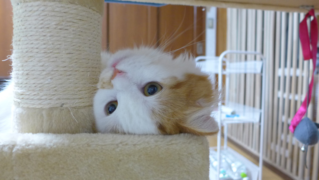 プロフィール:名前は、まろくん。マンチカン・長毛・長足・レッドダビーホワイトバン・男の子・陸上部・体操部・サッカー部・探検部・2018/12/21生まれ・京都府マンチの樹出身。タイトル背景は、まろくんのオデコ(笑)。