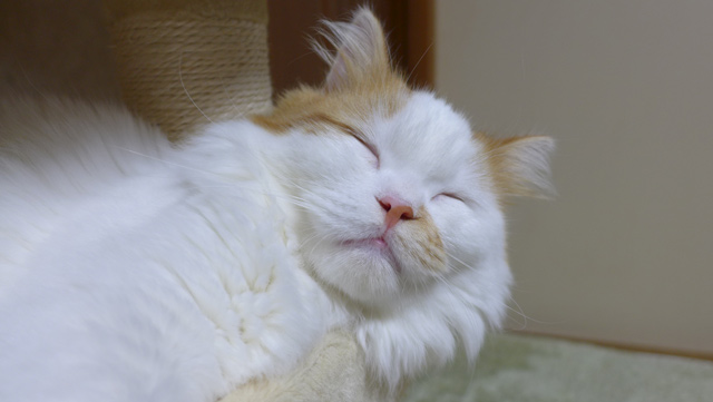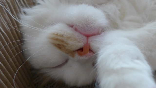 少しクチあけて、牙出して、ニコニコ顔で、お昼寝です。